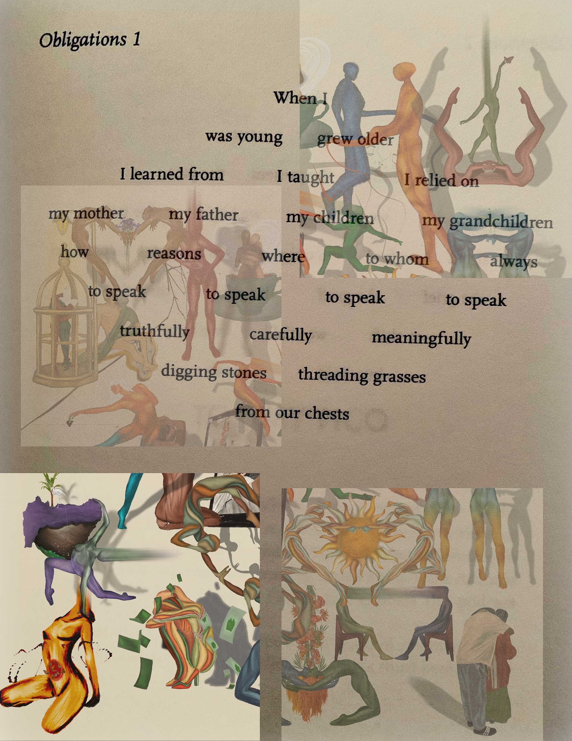A college about familial obligations. I am someone who is seeping with eldest daughter syndrome. My matriarchal mother and patriarchal father came together to create a protector of their youngest son with a host of issues. Being the first of all of my cousins to be born here, I was unknowingly behaving as a blueprint to my aunties and uncles as to what the perfect balance of cultural assimilation could be. My accomplishments were shared joy, and my failures were my own solidary sorrows. That’s a lot on a newborn baby. That’s a lot on a 30 year old woman.