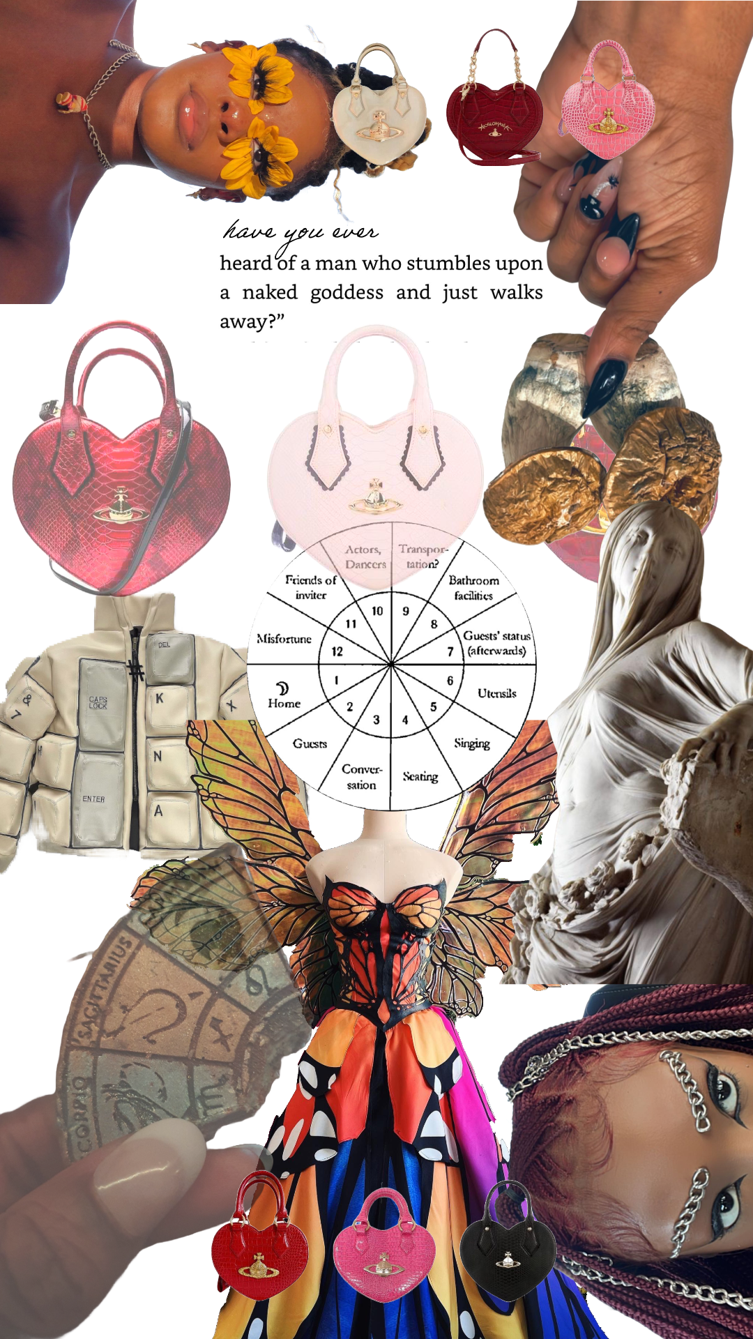 A collage about glamour and astrology. Luxury as we know it, all exists in different arenas. No arena is better than any other, but some arenas of luxury satisfy us better than others. My preferred arena of luxury is absolutely glamor. The ways we as women adorn ourselves all serve as nonverbal expressions of who we are and what we find important. Luxury is art. Glamour is art.